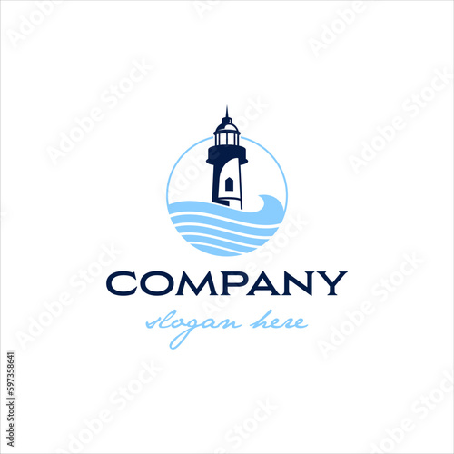© Dedy Andreas, Fototapeta premium Lighthouse logo with waves in masculine style design