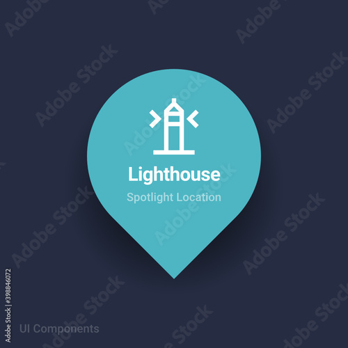 © blooon, Obraz premium lighthouse map spotlight location vector Icon.
