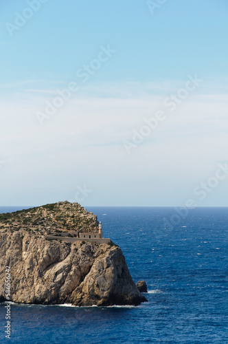 Fototapeta premium Lighthouse on Sa Dragonera, uninhabited rocky island off Majorca, Balearic...