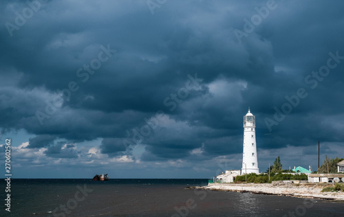 © Igor Luschay, Fototapeta premium Lighthouse on the background of rain clouds