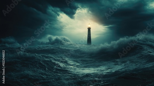 © Artyom, Fototapeta premium Lighthouse standing amidst tumultuous ocean waves under stormy sky
