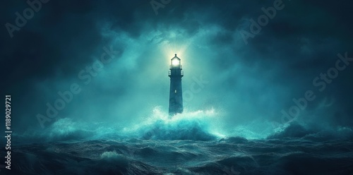 © NpicArt, Fototapeta premium Lighthouse Stands Strong Amidst Tempestuous Waves