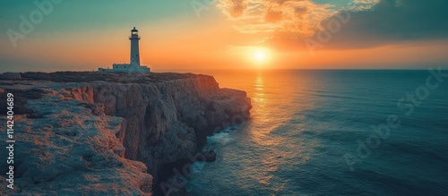 © meta, Fototapeta premium Lighthouse Sunset Seascape: Coastal Beauty at Golden Hour