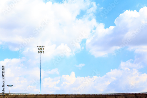 Obraz premium Lighting tower of stadium on sky and cloud background.