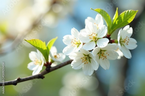 © Prasert, Obraz premium Lightly scented white blooms unfurl on cherry branch, pale blossoms blooming trees blossoms flowers springtime blossoms blossoms blossoms, blossoms blossoms blossoms