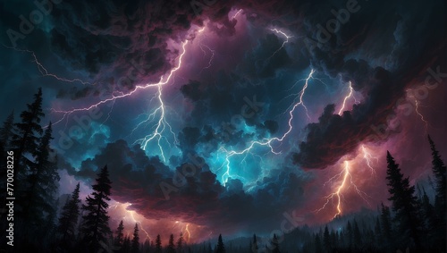 © MAHMOUD, Fototapeta premium Lightning and thunder in the sky