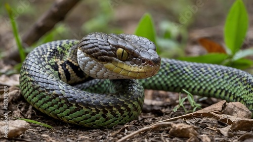 © KAThakshala, Obraz premium Lightning Fast: Pit Viper Strikes with Deadly Precision at Its Target