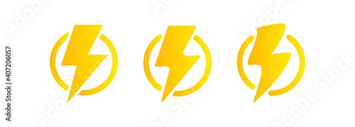 © Coosh448, Obraz premium Lightning icon. Electricity energy and thunder symbol concept. Lightning bolt in a circle. Vector on isolated white background. EPS 10