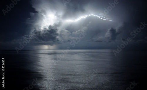 © zaltis, Obraz premium Lightning in a cloud over ocean