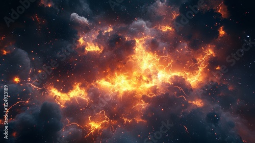 Naklejka premium lightning sparkles, beautiful flash, thunder, night, dusk, mysterious atmosphere, 3d illustration