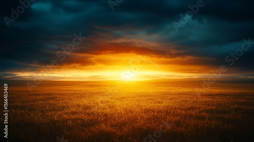 Fototapeta premium Lightning strikes at sunset over a golden field