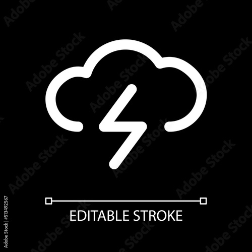 Fototapeta premium Lightning white linear ui icon for dark theme. Weather forecast and...