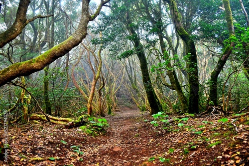 © jroberphotos, Naklejka premium Lights and shadows among the laurisilva of the Anaga mountain range forest