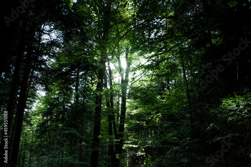 Obraz premium Lights and shadows in dark forest PL
