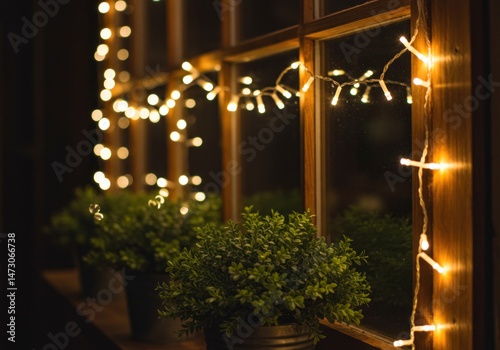 Obraz premium Lights glowing on a window.