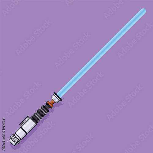 © Khairuman, Naklejka premium Lightsaber Vector Icon Illustration with Outline for Design Element, Clip Art, Web, Landing page, Sticker, Banner. Flat Cartoon Style