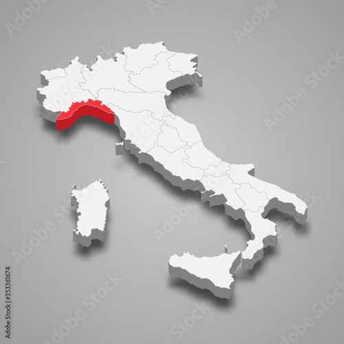 Fototapeta premium liguria region location within Italy 3d map Template for your design