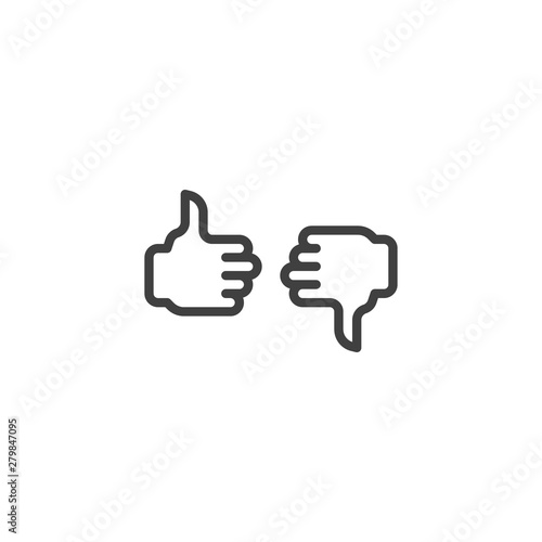 © alekseyvanin, Fototapeta premium Like and dislike line icon. Thumb up and thumb down linear style sign for mobile concept and web design. Feedback outline vector icon. Symbol, logo illustration. Vector graphics