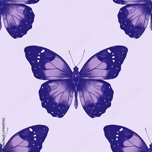 © Dominique, Obraz premium lila Butterfly seamless tile pattern background, ai generated