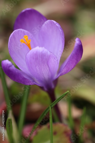 Fototapeta premium Lila Krokus im Park Frühling Ostern Makro Details