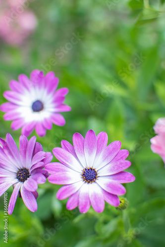 © Julia, Fototapeta premium Lila weiß blühende Kapkörbchen im Sommer