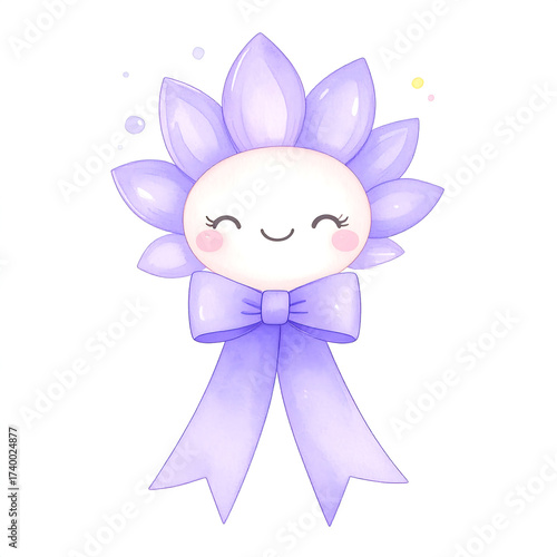 Fototapeta premium Lilac blossom smiles, wearing a ribbon, exudes playful delight