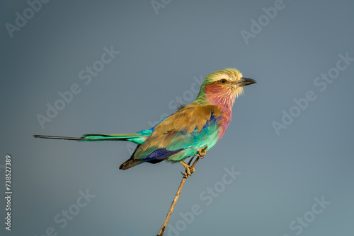 © Nick Dale, Obraz premium Lilac-breasted roller lifting tail on thin branch