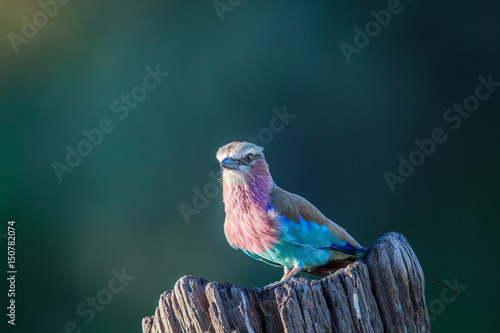 © simoneemanphoto, Obraz premium Lilac-breasted roller on a tree trunk.