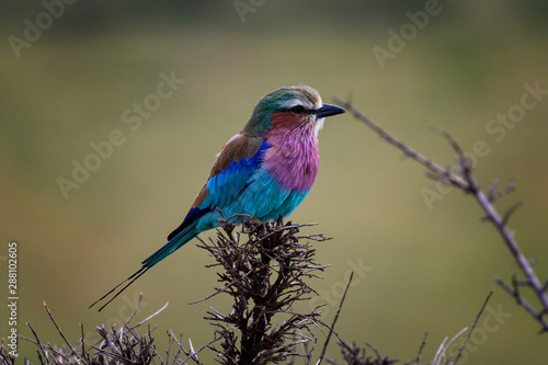 Fototapeta premium Lilac-breasted Roller on branch in Masai Mara ,Kenya.