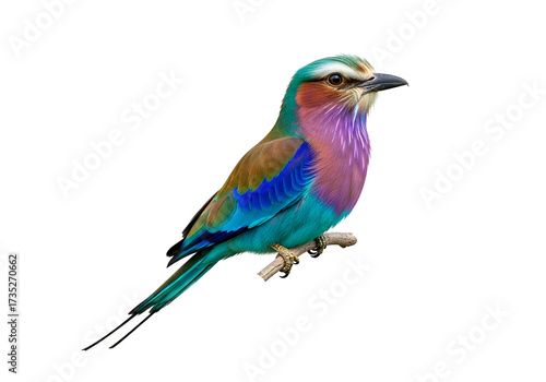 © isolatedpng, Fototapeta premium Lilac Breasted Roller Perched on Branch against Plain Backdrop for Stock Use