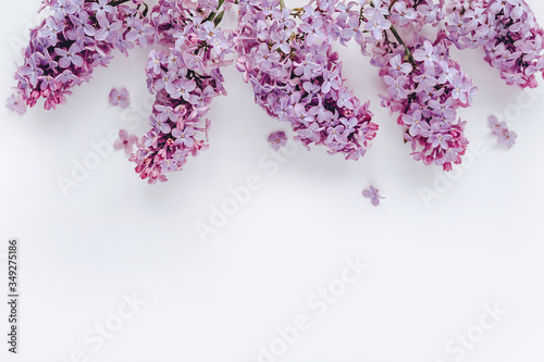 Fototapeta premium lilac flowers on a white background. the view from the top