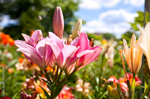 Naklejka premium lilies in a colorful garden