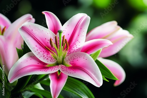 Fototapeta premium Lilies, stargazer lilies, vibrant pinks and whites captivate with their dramatic, star-shaped blooms
