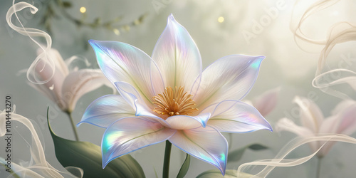 Fototapeta premium lily flower in foggy cosmic background, created by Generative AI