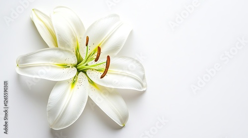 © Alexander LW, Naklejka premium Lily flower on white isolated background. Close-up. Top view. place for text.