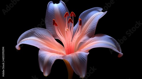 Obraz premium Lily make lit with pink light. AI Generated