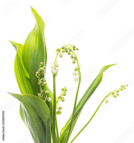 © studybos, Obraz premium Lily of the valley flowers on white background