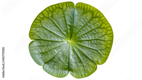 Obraz premium Lily pad, vibrant green, detailed veins, circular shape, top view