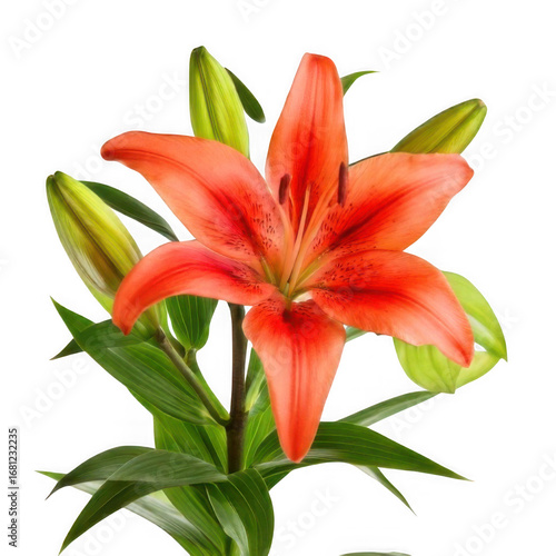 Fototapeta premium Lily with green leaves, isolated on white and transparent background