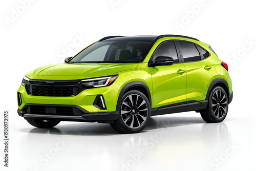 © MSTKHADIJA, Fototapeta premium Lime car green compact SUV with black accents