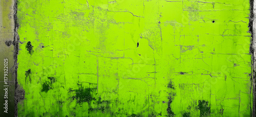 © Aquir, Obraz premium Lime green painted concrete wall background with brushstrokes and texture