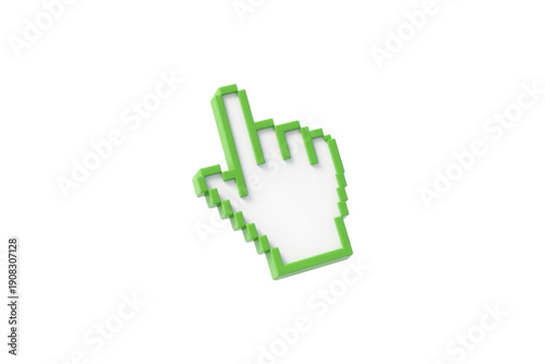 Obraz premium Lime Green Pixel Hand Cursor Isolated