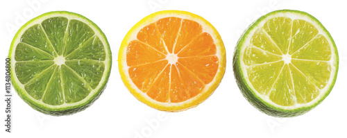 Fototapeta premium Lime, Orange, and Lime Slices Isolated on PNG Transparent Background