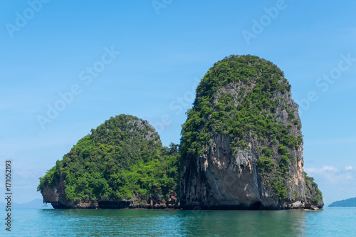 Obraz premium Limestone mountain with blue sky at Phra Nang cave beach