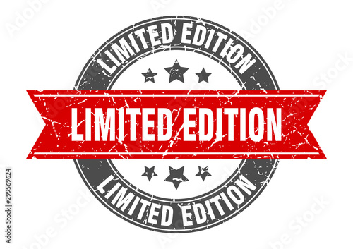 Fototapeta premium limited edition round stamp with red ribbon. limited edition
