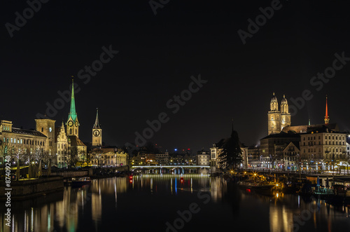 © borisb17, Obraz premium Limmat river in evening, Zurich
