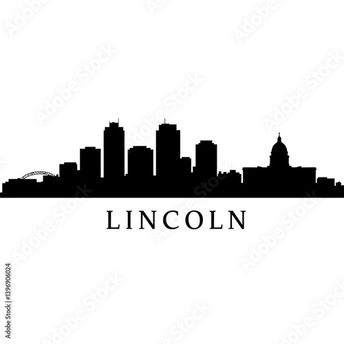 © godsfavoritearts, Naklejka premium Lincoln Nebraska Skyline Silhouette Vector.