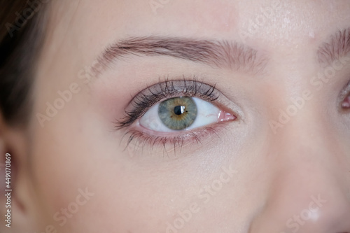 Obraz premium Linda mulher com maquiagem e batom sobre olhar lindo exuberante.