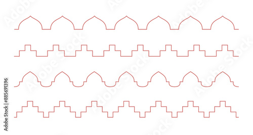 © Purrga, Naklejka premium Line arabic roof top seamless border pattern. Simple outline elements