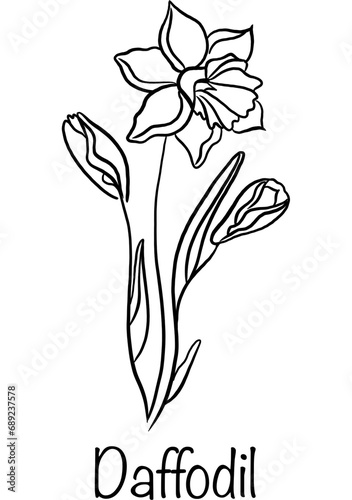 Obraz premium Line art Birth Month Flower of March named Daffodil